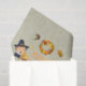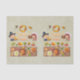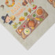 Papier de tissus avec une illustration de Thanksgiving - un pèlerin et natif avec de nombreux dessins thématiques d'action de grâce. Une table avec un festin glorieux de dinde, des feuilles d'automne et une couronne. Le texte dit "Merci beaucoup". Placer sur un arrière - plan bronzé avec un motif damassé.