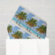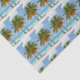 Papier de tissus avec une belle et tranquille photo de 2 palmiers sous un ciel bleu vif. Situé sur une plage tropicale isolée avec une eau turquoise et calme.