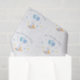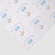 Ce papier de tissu baby shower présente un thème doux et mignon renard dans les tons bleus. Un bébé renard dort et est porté par des ballons et entouré d'étoiles.
