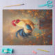 Papier de tissu de découpage dynamique avec une belle peinture d'un coq, parfait pour ajouter une touche audacieuse et rustique à l'artisanat, emballage cadeau et projets créatifs.