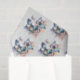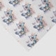 Papier de tissus avec un trio de papillons flottant parmi de jolies fleurs. Couleurs bleu rose et vert.