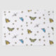 Tissue paper with butterflies, dragonflies, honey bees and bumblebees pattern. White paper with yellow and blue butterfly images. Dragonfly and bees are black with a little yellow. Use to wrap a gift for any occasion. Perfect for a gardener's birthday, or housewarming.