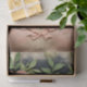 The artwork includes warm skin tones, soft blush makeup, and muted pastel florals in pink, green, and cream tones. The vintage paper backdrop adds an aged, antique feel while keeping the overall design feminine and elegant.
