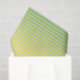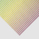 Le design présente de fines rayures horizontales blanches sur un arrière - plan de dégradé vert/jaune/magenta pastel.