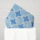 Les nuances du bleu avec le blanc décorent ce papier de soie de soie géométrique.
