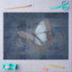 "Papier de tissus bleu papillon bleu marine Ephemera bleu découpage." Une oeuvre élégante, peinte par l'artiste et designer de renommée internationale Audrey Jeanne Roberts, présente un papillon Blue Morpho au-dessus d'un arrière - plan à la belle texture, à l'écriture vintage et à l'éphémère sur un riche arrière - plan bleu profond. Droit d'auteur .
