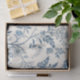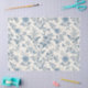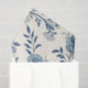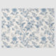 A detailed vintage floral illustration in blue tones, featuring delicately drawn branches, leaves, and blossoms on a light background, creating a classic and elegant botanical look. Toile-de-Jouy