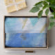 Voici un papier de tissu décoratif élégant dans 3 tons de bleu (aqua, indigo, blues phtalo) avec or brillant et médium brillant iridescente peint en motifs abstraits. Vous pouvez voir la texture du papier tissulaire et les motifs et les tourbillons de spatter. Ce tissu ajoute une touche élégante à toute boîte cadeau!