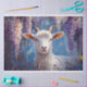 Un charmant tableau représentant un portrait de chèvre encadré sous des fleurs de glycine violette en cascade, mêlant personnalité rustique et élégance florale.
