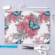 Bouquet dessiné à la main de fleurs tropicales, feuilles de palmiers et papillons