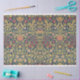 Ce dessin présente un motif de tissu créé par l'artiste britannique William Morris (1834-1896), fondateur du mouvement Arts and Crafts. Il montre du feuillage vert sur un arrière - plan bleu avec des touches de couleur rouge et rose. On y trouve des fleurs de tournesol, de violet et de columbine. Le motif original a été conçu pour la première fois en 1883.