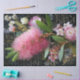 Papier Mousseline Brosse à fond rose et découpage à fleurs