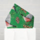 Le papier d'emballage festif de vacances présente des taupiniers rouges avec des cônes de pin et des branches à feuillage persistant sur arrière - plan vert.