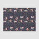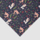 Des lapins et des fleurs d'art populaire scandinave sur un arrière - plan bleu foncé.