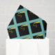 Tissu cadeau de remise de diplômes unique et décoration de fête de grad avec motif de bonnet de graduation noir et or sur arrière - plan bleu turquoise.