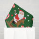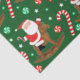 Un cadeau de vacances équestre créatif ou des tissus de fête avec Père Noël chevauchant un cheval rocking entouré de bonbons de Noël.