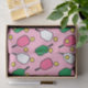 Tissu cadeau de joueur de pickleball créatif ou décoration de fête avec des pagaies chaudes rose et cool vert et des boules jaunes motif sur un arrière - plan rose.