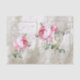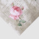 Des roses roses roses sur un cadre doré avec une lettre en écriture française sur un arrière - plan taupe peint.