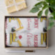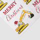 Une jolie illustration d'une pelle de jouets jaune portant un chapeau de Père Noël et décorée de lumières de Noël en train de déterrer des cadeaux de Noël avec les mots "Joyeux Noël". Parfait pour les amateurs de camions de construction de tous âges. Papier de tissu de Noël idéal pour les passionnés de pelleteuses, petits ou grands, filles ou garçons.