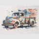 Camion Vintage patriotique avec drapeau américain dans l'arrière - plan