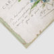 Ce collage vintage est parfait pour le découpage et les autres métiers du papier! Carte postale française ("carte postale") avec cachet postal et écriture manuscrite française sur un morceau de parchemin ancien avec un oiseau d'Epervier européen et l'illustration de ne pas m'oublier. La page verte ci-dessous provient d'un vieux magazine français.