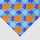 Un mignon poulpe orange. Motif bleu plaid dans l'arrière - plan. Papier de tissu animal bébé. Décor de fête et idée cadeau pour les enfants.