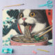 Papier Mousseline Cat Ramen Japanese Art Vintage Style