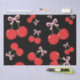 Papier Mousseline Cerises Noires avec Coquette au Ruban Rose