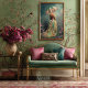 Field of Dreams, Portrait & Parasol, Vert émeraude, vert citron, or beige et rose fuchsia prune, Papier Tissu Découpage. Important . Visitez mon magasin pour les côtés correspondants à ce triptyque ensemble de 3.