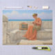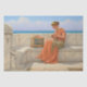 Le papier de tissus présente la peinture "Chansons sans mots" (1918) de John William Godward. Cette belle oeuvre d'art classique de couleur claire présente une femme tenant une flûte sur un banc à côté d'un oiseau en cage avec en toile de fond l'océan. Principalement les tons orange, bleu et marron.