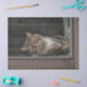 Vintage, rétro regardez ce papier de tissu idéal pour découpage, l'artisanat, les livres de rebut, l'emballage cadeau ou pour remplir des sacs cadeaux. Chat dans la fenêtre, cadre de fenêtre en détresse, dans le style d'Antonio Guzman Capel.