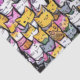 Une illustration amusante du visage des chats bordés d'un contour noir audacieux. Il y a des chats gris, noirs, orange et blancs aux oreilles pointues serrées les unes à côté des autres dans un collage sans couture, motif répétitif. Ce dessin humoristique en aquarelle est le cadeau idéal pour les amoureux de les chats qui ont adopté ou acheté un nouvel ami félin.
