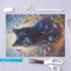 Papier Mousseline Chat noir et Fleur sauvage violet déroupage