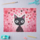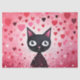 Papier Mousseline Chat noir mignon avec Coeurs roses Découpage
