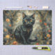 Papier Mousseline Chat noir moderne avec fleurs -Découpage-