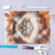 Le papier de tissus est orné d'un adorable chat poupée de chiffon portant une écharpe et un casquette, entouré de feuilles d'automne et décoré. Un joli portrait d'aquarelle de félin à coeur d'automne d'un chaton laineux aux yeux bleus. Idéal pour les amoureux de les chats, les mamans de chat et les papas de chat !