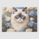 Papier Mousseline Chat Ragdoll Avec Fleurs Bleues D'Hydrangée