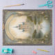 1 sur 2 IMAGES QUI COORDONNENT, UNE AVEC LE CHÂTEAU, UNE SANS. Vintage défilement Art Nouveau Victorien, arqué design doré est jumelé avec un Château d'imaginaire sur une colline avec une lueur légèrement éthérée. La bordure est dans un bleu marine foncé et muet gris bleu marine. En contrebas, un lac et un jardin fleuri paisible complètent la scène. Soigneusement rehaussée par l'éphémère écriture manuscrite qui est superposé sur l'image texturée craquelée. MSP0119-4b