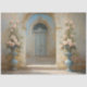 ELÉGANTE peinture DÉCOUPAGE d'une cour du Château à la française avec des urnes débordant de roses rose pâle et rousse. De grandes urnes bleues surplombent l'entrée et l'élégance rustique de l'arcade vintage et de la porte en détresse. Shabby chic junk journal L'image de style botanique avec la texture craquelée offre une antiquité instantanée pour vos meubles ou projets décoratifs. Pour coordonner la recherche d'images MSP0147