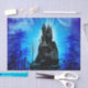 Le château impressionnant pendant la nuit avec la lune et les étoiles se retranchent, imaginaire, fée, "conte de fées", lune, nuit, étoiles, nébuleuse, oiseaux, mouche, vol, bleu