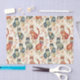 Tissu papier dans un motif de chats aquarelles en brosses fluides, tourbillonnantes inspirées de l'art chinois, en dégradés de rouge, bleu, vert et noir, se mélangeant harmonieusement avec des feuilles stylisés.