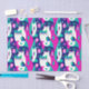 Papier de tissus dans un design moderne du milieu du siècle avec deux chats stylisés aux formes audacieuses et géométriques de turquoise, magenta, bleu foncé et blanc. motifs Abstraits et formes rétro remplissent l'arrière - plan, lui donnant une ambiance amusante et vintage avec un bord minimaliste.