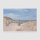 Le chemin à travers les dunes de sable avec l'herbe dunaire et la barrière patinée de plage à la course se dirigent sur Cape Cod