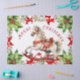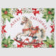 Un beau cheval blanc à bascule est une merveille à voir. C'est une image d'aquarelle vintage que nous aimons. Décoré dans le rouge des vacances, il semble sauter à travers une couronne fleurie rouge et verte. "Joyeux Noël" est de type rouge décoratif. Le papier de tissu est idéal pour les projets d'emballage cadeau ou pour le découpage.