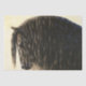 Cheval friésien Noir avec une longue crinière ondée montrant des temps chauds et jaunes de la lumière du soleil de la fin de l'après-midi.