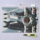 Joli papier de tissu de Noël avec le graphisme d'un cheval blanc et d'un cheval noir debout à une porte en bois décorée de rires de vacances et de jolies lumières scintillantes de Noël recouvertes de neige. Ces chevaux sont faits dans un dessin humoristique de style pop art pour évoquer un sentiment nostalgique.