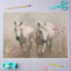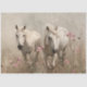 Papier Mousseline Chevaux gris Fleurs roses Peinture à l'huile Décou