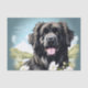 Papier Mousseline Chien de Terre-Neuve avec fleurs blanches