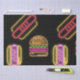 . : Deux hot dogs de néon et un hamburger sur un arrière - plan noir contrasté . : Design amusant par 7 ans