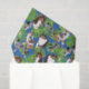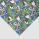 Des illustrations jolies et réalistes de chiens ou d'australiens Shepherd et de feuilles de monstères tropicales vertes et vives sont présentées contre un arrière - plan bleu royal sur ce papier de tissu à motif de toute occasion.